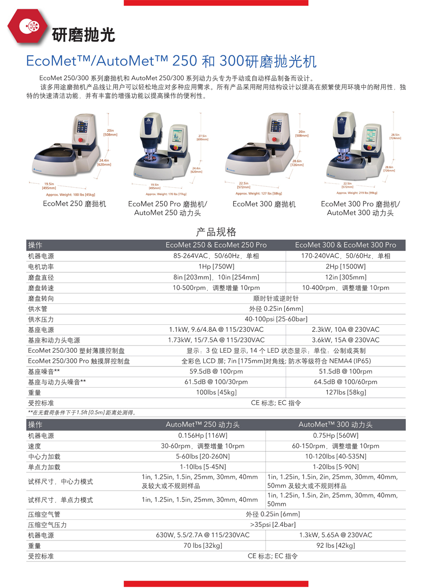 EcoMet 250/300 系列磨拋機(jī)和 AutoMet 250/300 系列動(dòng)力頭專(zhuān)為手動(dòng)或自動(dòng)樣品制備而設(shè)計(jì)。