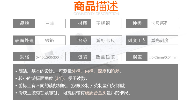 產(chǎn)品名稱(chēng):日本三豐Mitutoyo530系列四用游標(biāo)卡尺