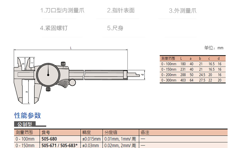 產(chǎn)品型號(hào):505系列帶表卡尺