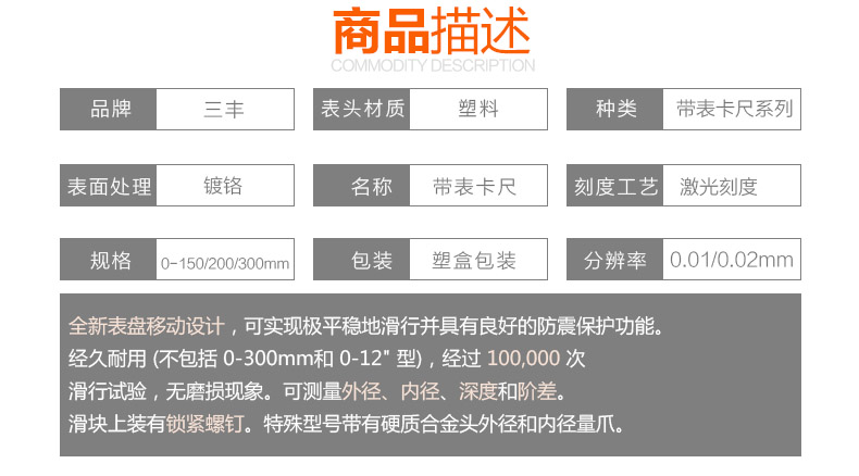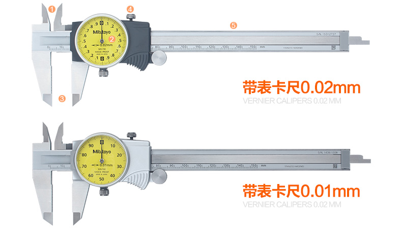 產(chǎn)品名稱(chēng):日本三豐Mitutoyo505系列帶表卡尺