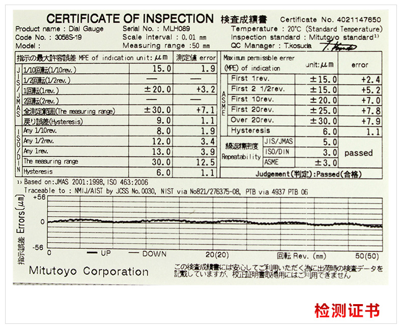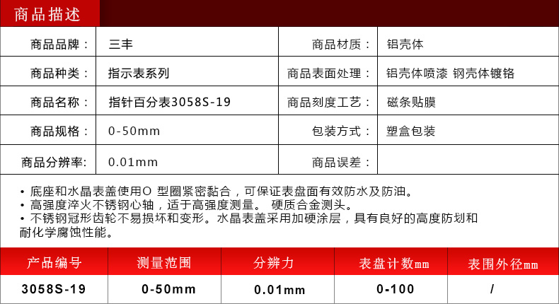 產(chǎn)品名稱(chēng):日本三豐Mitutoyo 3058S-19百分表指針式