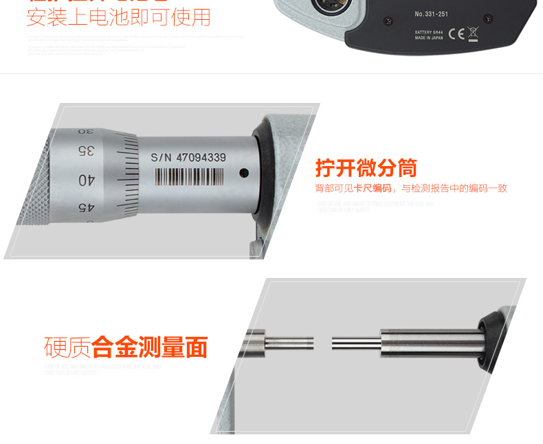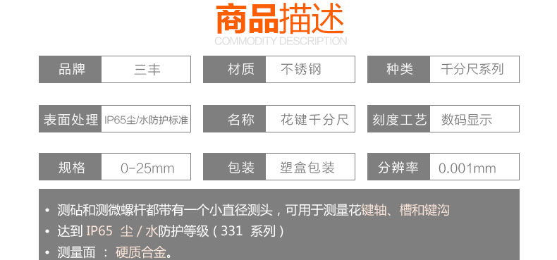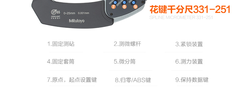 產(chǎn)品型號:331系列花鍵數(shù)顯外徑千分尺