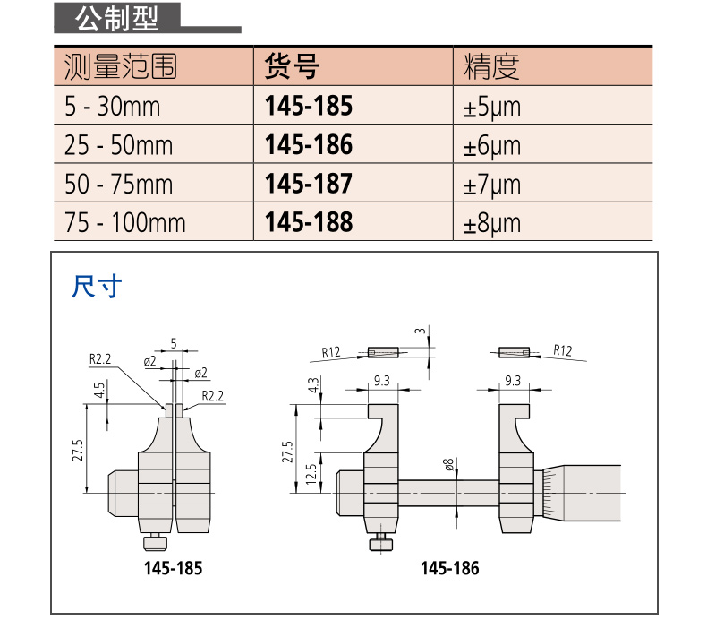 產(chǎn)品型號:145系列卡尺型內(nèi)徑千分尺