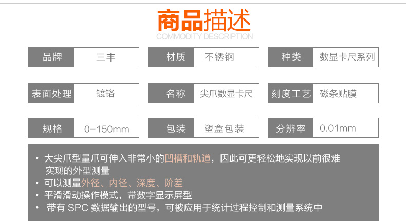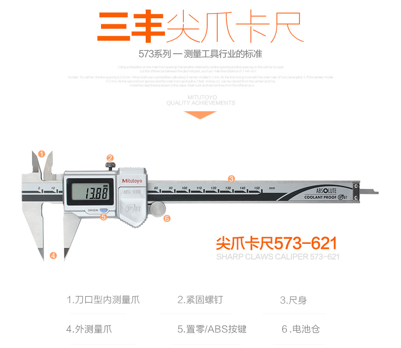 產(chǎn)品型號(hào):573系列細(xì)尖爪數(shù)顯卡尺