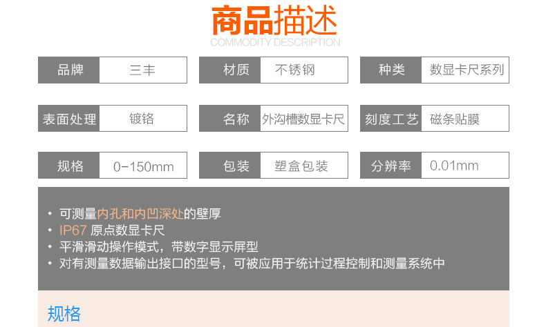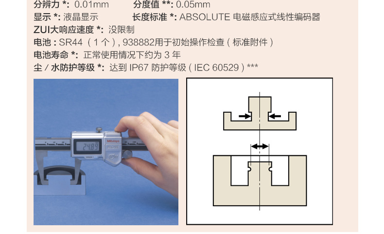 產(chǎn)品型號:573系列外溝槽數(shù)顯游標卡尺