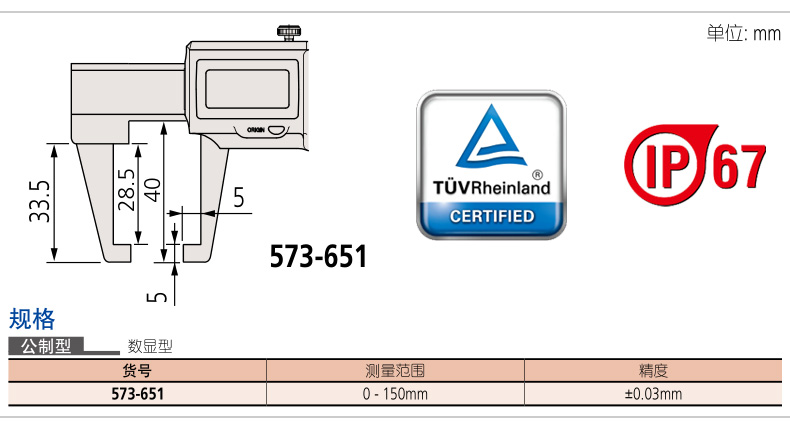 產(chǎn)品名稱:日本三豐Mitutoyo 573系列外溝槽數(shù)顯游標卡尺