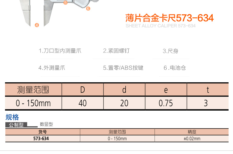 產(chǎn)品型號:573系列薄片合金數(shù)顯卡尺