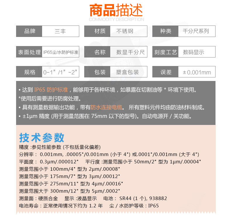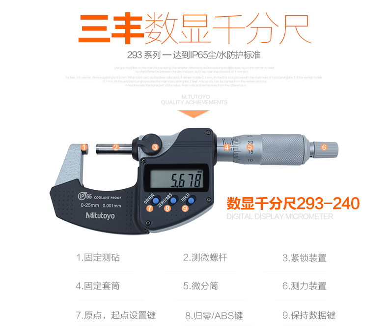 產品名稱:日本三豐Mitutoyo 293系列數顯千分尺