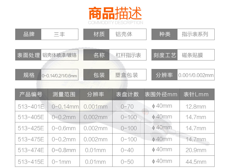 產(chǎn)品名稱(chēng):日本三豐Mitutoyo 513系列杠桿百分表