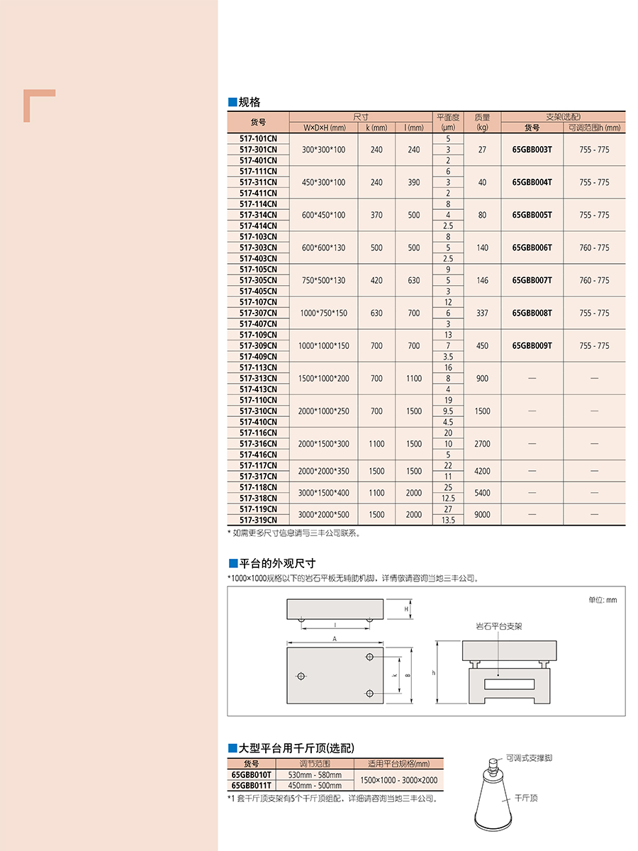 產(chǎn)品名稱:日本三豐(Mitutoyo)517系列精密花崗巖平臺(大理石平臺)