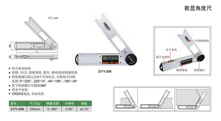 產(chǎn)品名稱:英示(INSIZE)2171型數(shù)顯角度尺