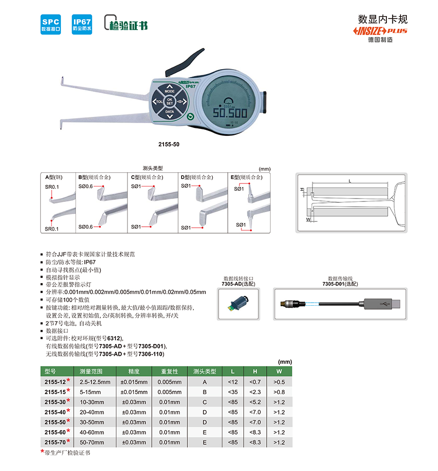 產(chǎn)品名稱:英示(INSIZE)2155型數(shù)顯內(nèi)卡規(guī)