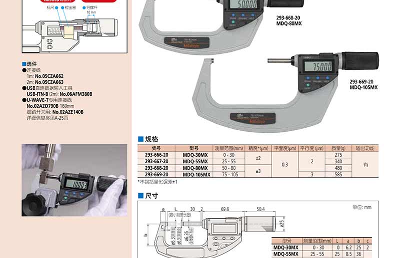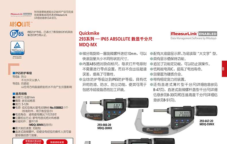 產(chǎn)品名稱:日本三豐(mitutoyo)Quickmike293 系列 IP65 ABSOLUTE 數(shù)顯千分尺M(jìn)DQ-MX