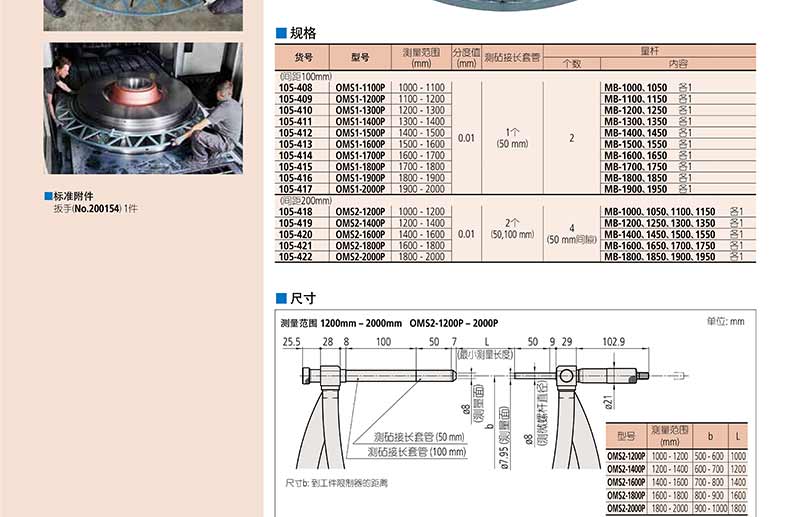產(chǎn)品名稱:日本三豐(mitutoyo)輕量型外徑千分尺105 系列 帶有測砧接長套管OMS1-P · OMS2-P