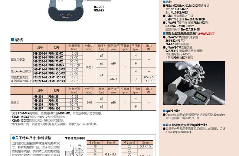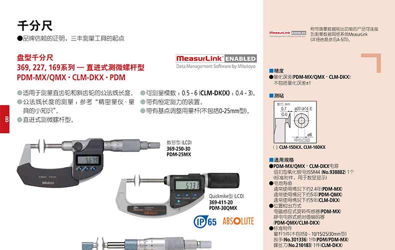 產(chǎn)品名稱:日本三豐(mitutoyo)盤型千分尺369, 227, 169 系列 直進(jìn)式測微螺桿型