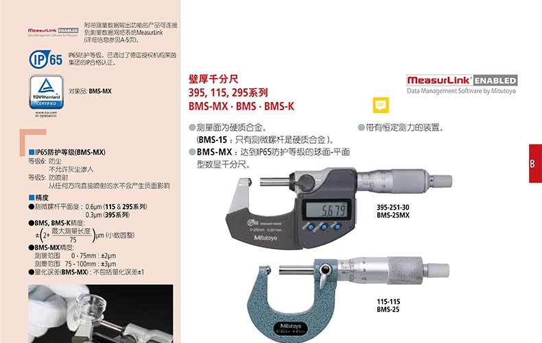 產(chǎn)品名稱:日本三豐(mitutoyo)壁厚千分尺395, 115, 295 系列 BMS-MX · BMS · BMS-K