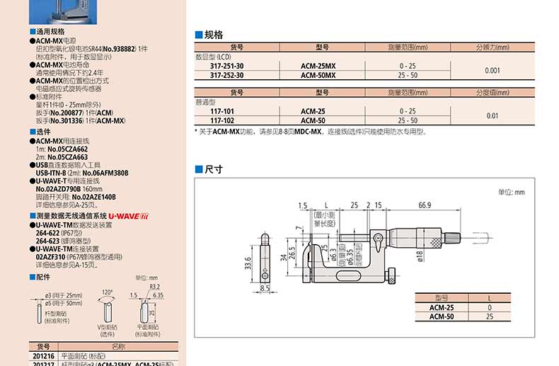 產品名稱:日本三豐(mitutoyo) Uni-Mike317, 117 系列 — 可更換測砧型