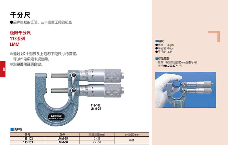 產(chǎn)品名稱:日本三豐(mitutoyo)極限千分尺113 系列LMM