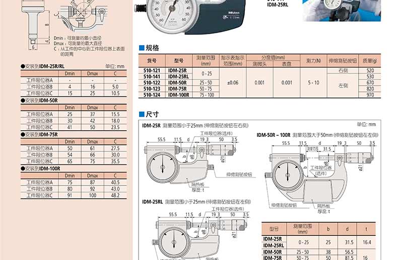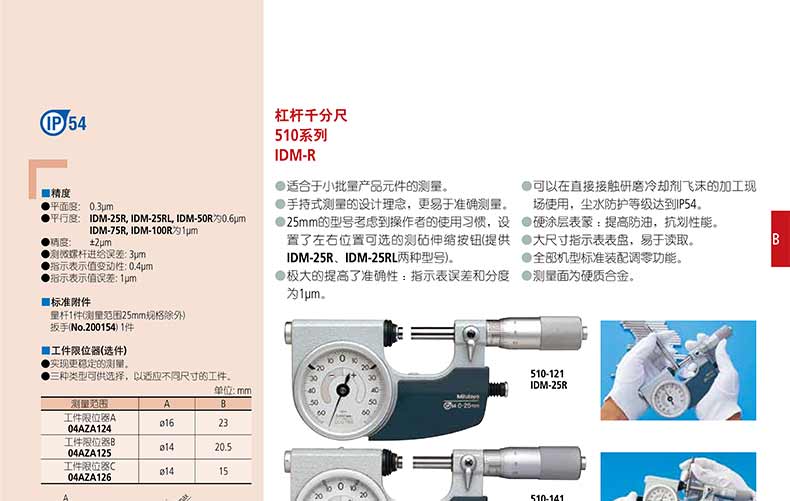 產(chǎn)品名稱:日本三豐(mitutoyo)杠桿千分尺510 系列IDM-R