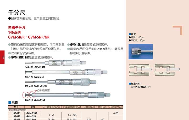 產(chǎn)品名稱:日本三豐(mitutoyo)凹槽千分尺146 系列GVM-SR/R ? GVM-SNR/NR