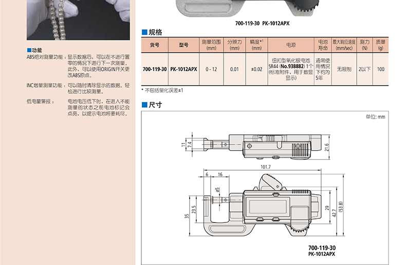 產(chǎn)品名稱:日本三豐(mitutoyo)Quick-Mini ( 便攜式小型比較儀 )700 系列