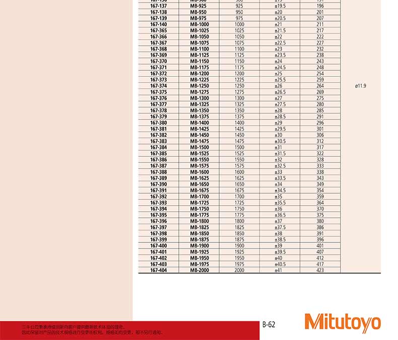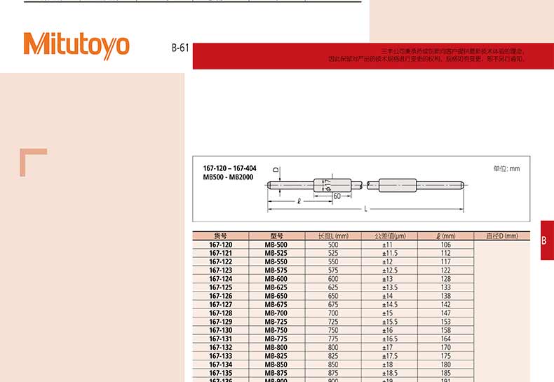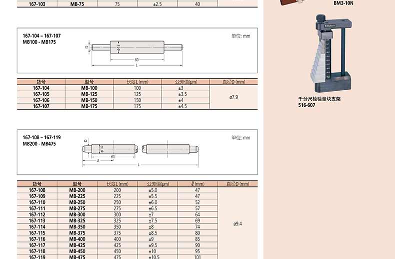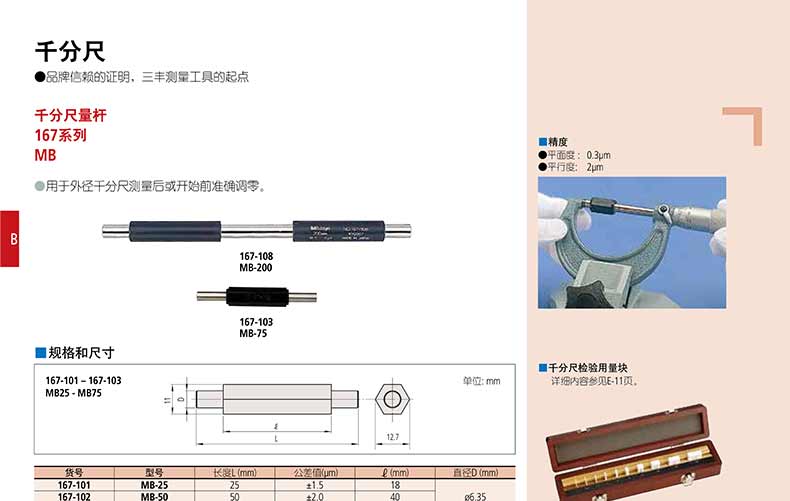 產(chǎn)品名稱:日本三豐(mitutoyo)千分尺量桿167 系列MB