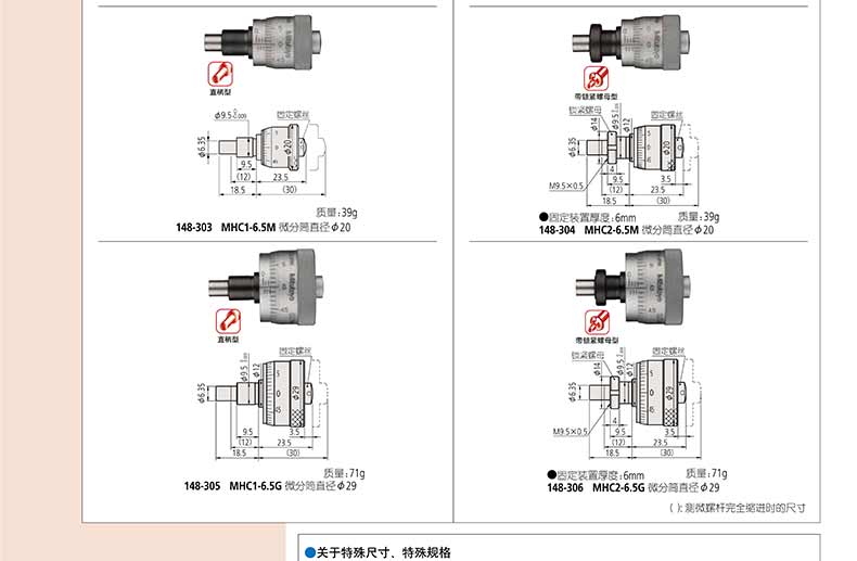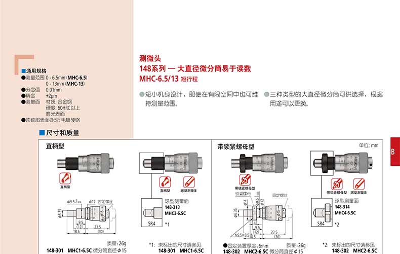 產(chǎn)品名稱:日本三豐(mitutoyo)測微頭148 系列 — 大直徑微分筒易于讀數(shù) 短行程