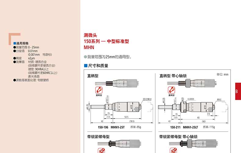 日本三豐(mitutoyo)測(cè)微頭150 系列 — 中型標(biāo)準(zhǔn)型