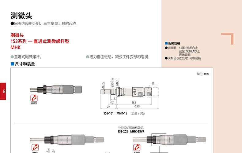 產(chǎn)品名稱:日本三豐(mitutoyo)測微頭153 系列 — 直進式測微螺桿型