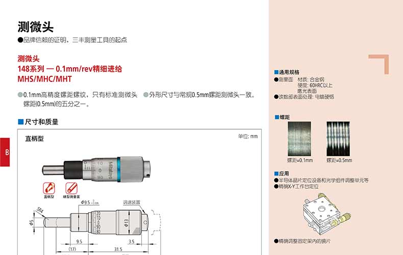 產(chǎn)品名稱:日本三豐(mitutoyo)測(cè)微頭148 系列 — 0.1mm/rev 精細(xì)進(jìn)給