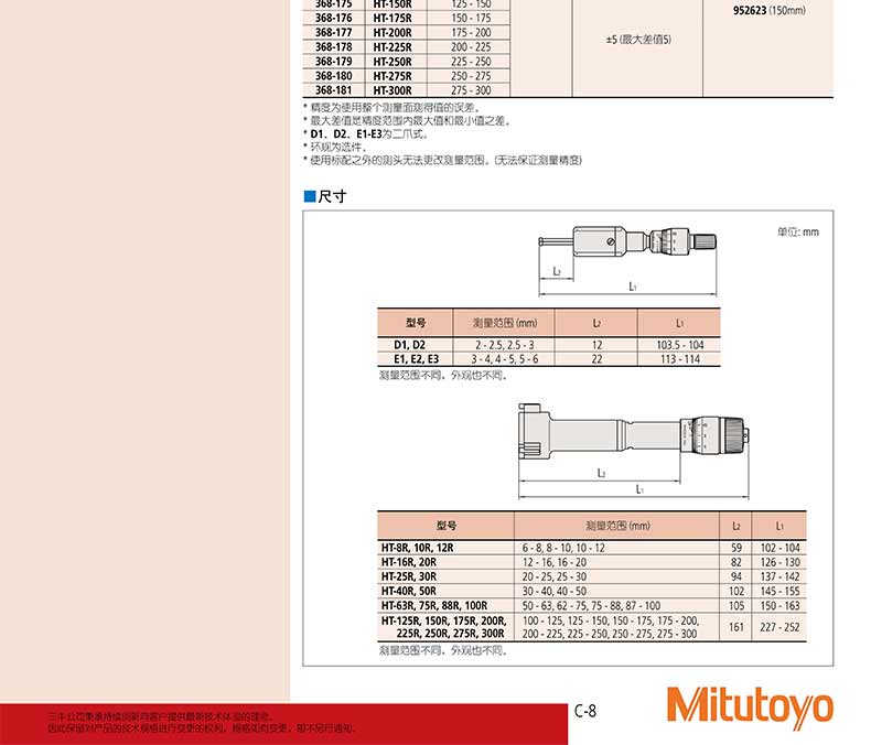 日本三豐(mitutoyo)紙厚千分尺169 系列 — 直進(jìn)式測(cè)微螺桿型PPM