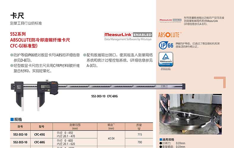 產(chǎn)品名稱:日本三豐(mitutoyo)552 系列ABSOLUTE 防冷卻液碳纖維卡尺標(biāo)準(zhǔn)型