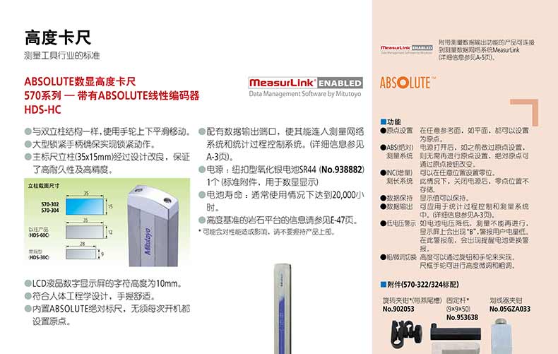 產(chǎn)品名稱:日本三豐(mitutoyo)數(shù)顯高度卡尺570 系列 — 帶有 ABSOLUTE 線性編碼器