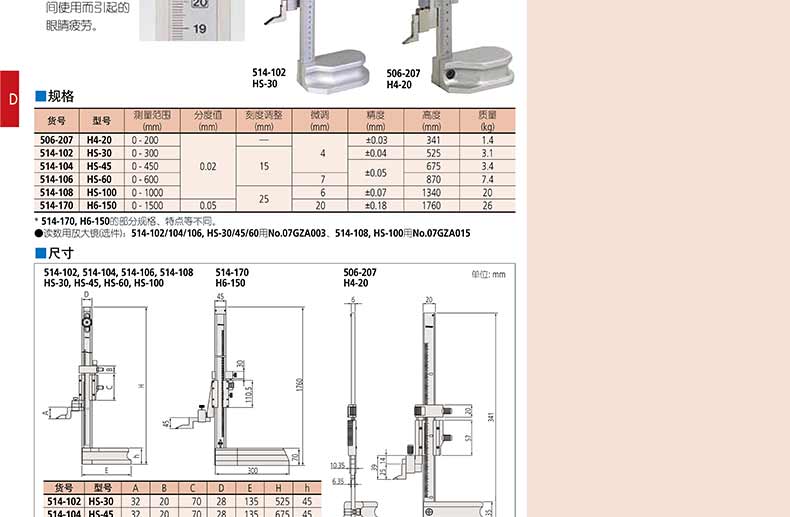 產(chǎn)品名稱:日本三豐(mitutoyo)機械游標(biāo)高度卡尺514, 506 系列帶有可調(diào)主標(biāo)尺