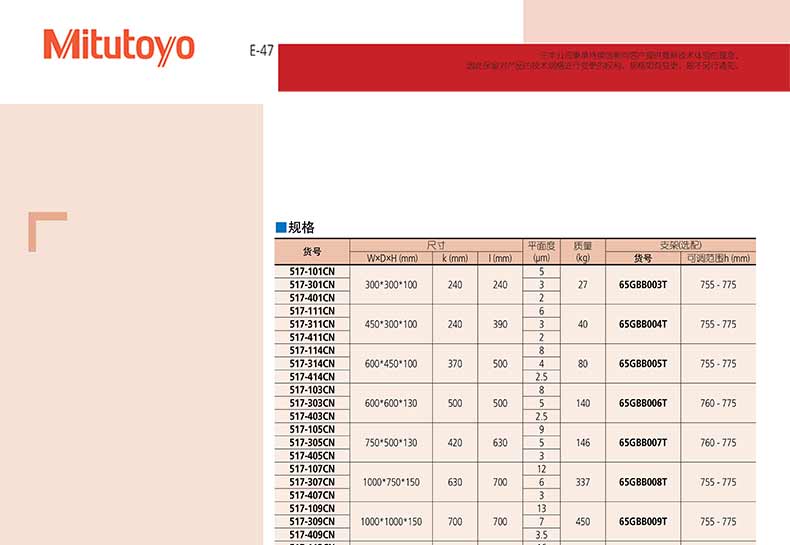 產(chǎn)品名稱:日本三豐(mitutoyo)基準(zhǔn)規(guī)517 系列精密花崗巖石平臺(tái)
