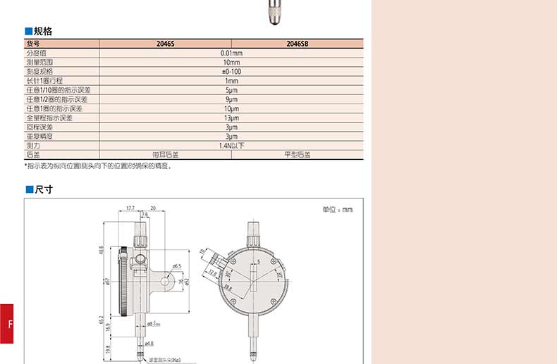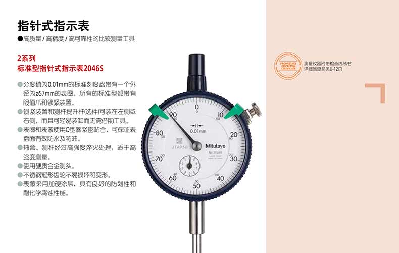 產(chǎn)品名稱:日本三豐(mitutoyo)2 系列標(biāo)準(zhǔn)型指針式指示表2046S機(jī)械指示表