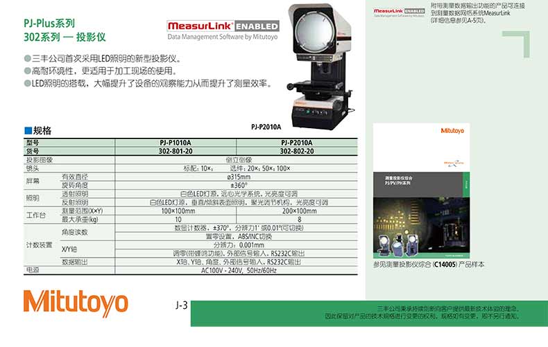 日本三豐(Mitutoyo)PJ系列投影儀(PJ-A3000和PJ-H30)