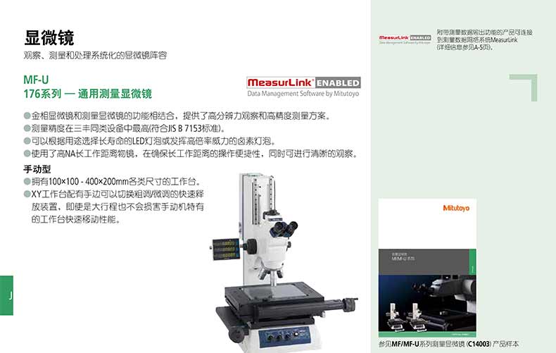 產(chǎn)品名稱:日本三豐(mitutoyo)176 系列金相和測量通用顯微鏡手動和電動型顯微鏡